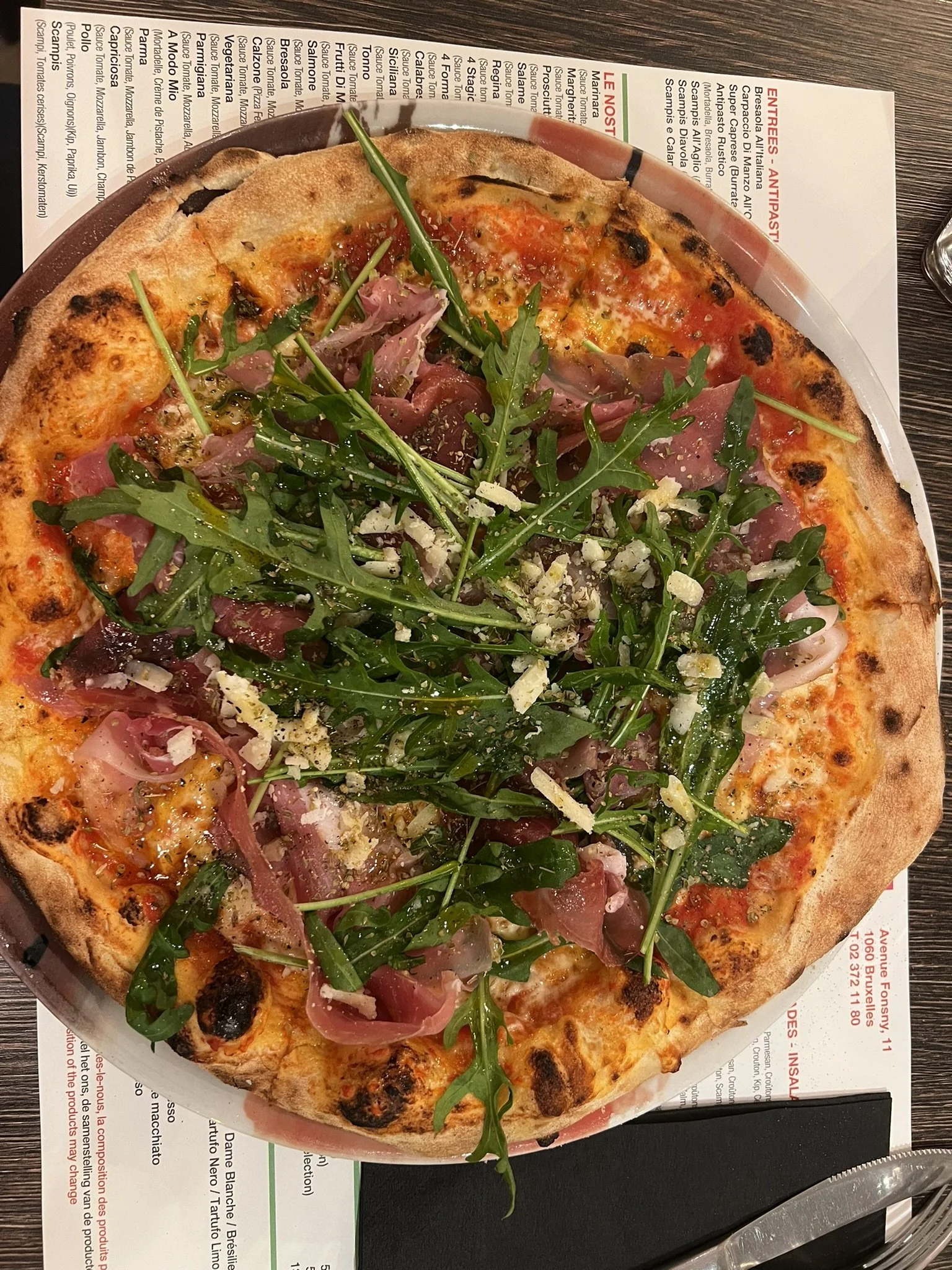After a shower, I began the classic quest: Mussels in Brussels. But hunger quickly spiraled into hanger as I discovered that Mondays in Brussels are a cultural wasteland—not only were the museums shut, but so were most of the decent restaurants. Moules frites sounded great, but it was too rainy to traipse across town again so my dulled brain defaulted to pizza and steered me to a nearby Italian spot that seemed...decent.