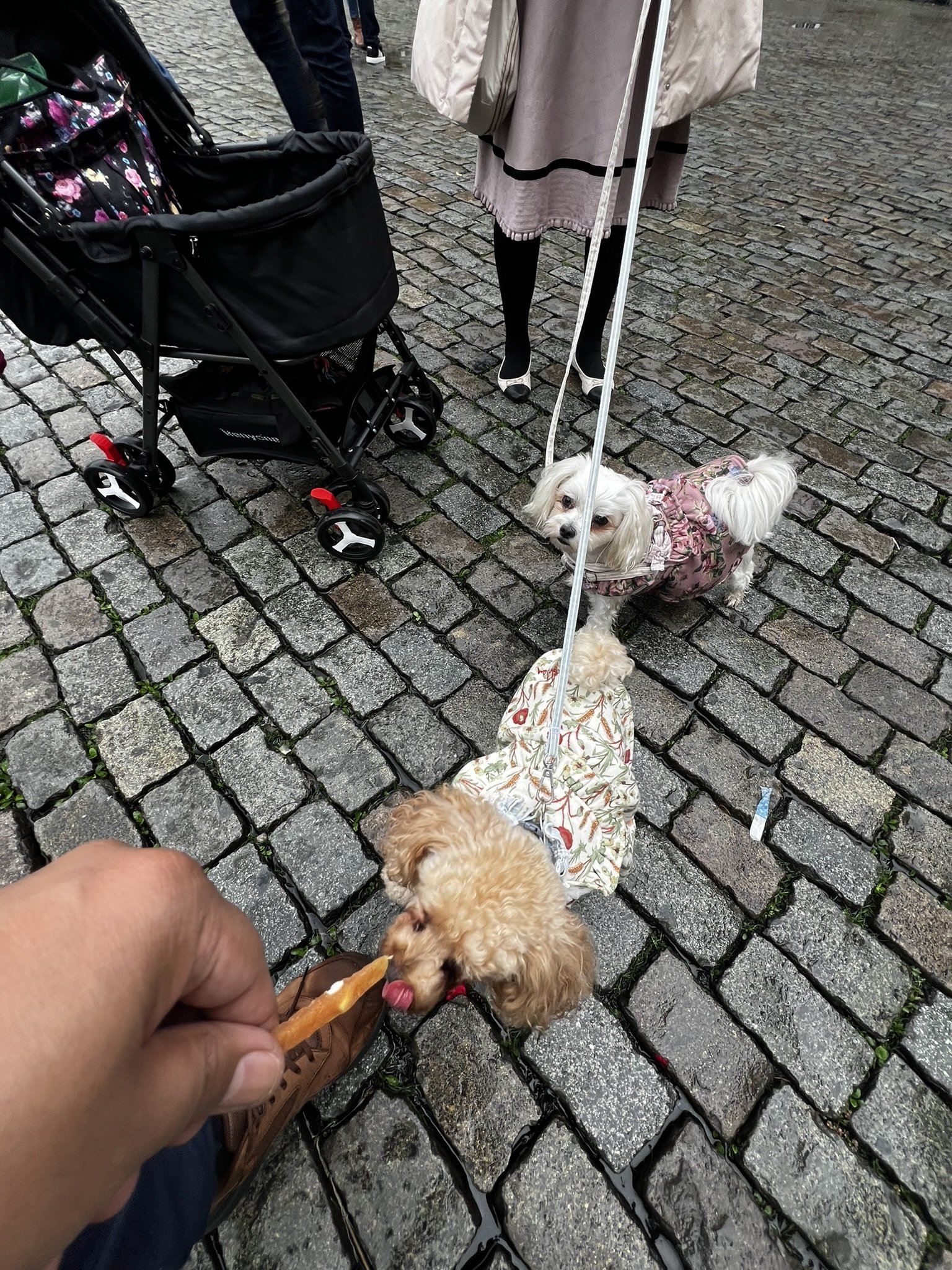 To ease tensions, she handed me some treats to bribe them. But hang on 'Wait… only MUMMY gives us treats! Who IS this imposter?!' They yapped in rage and betrayal as I tried to dispense the treats, checking my fingertips after each foray.