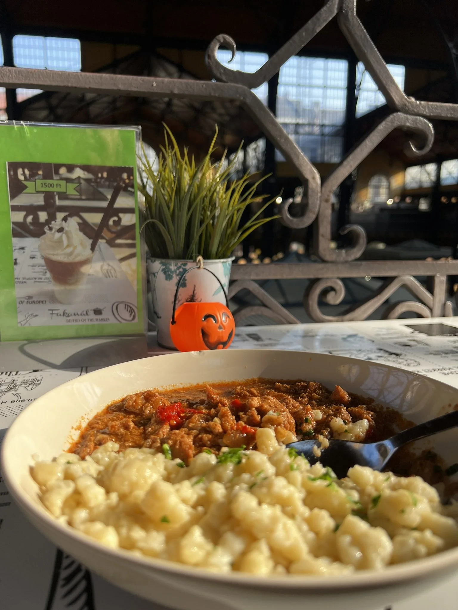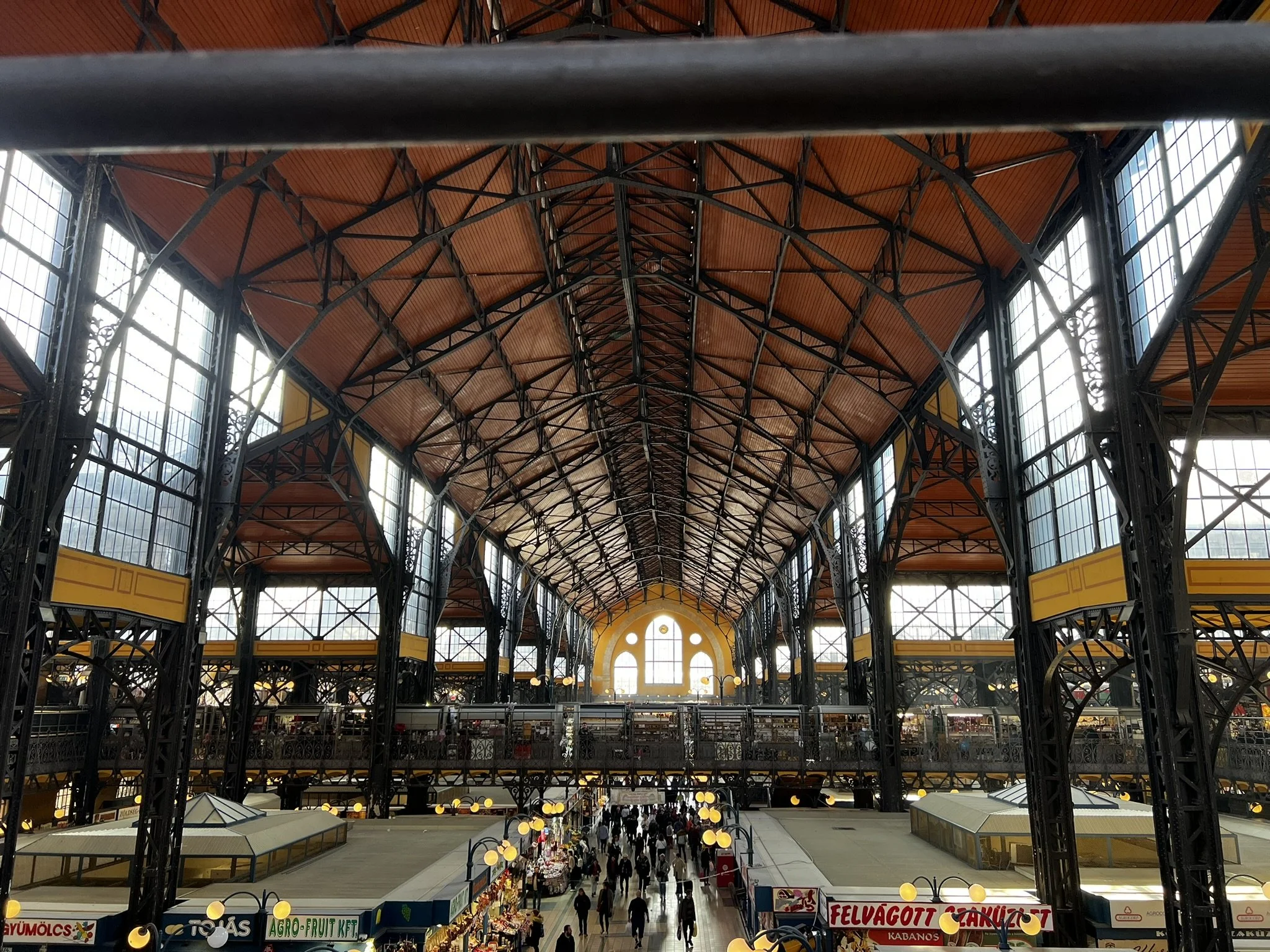 My flight wasn’t until the afternoon, but I was done with sightseeing. However, the Great Market Hall was only 8 minutes away, so I threw on my jacket and quick-marched alongside the roaring freeway toward what looked like a neo-Gothic aircraft hangar, its facade stitched together by hundreds of rectangular windows that warmed the bustling market aisles with hazy morning light.