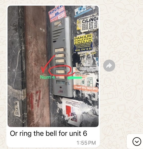 Pacing up and down like a lost delivery man, I tried to find a buzzer to match the picture and sent Leila a photo of my location. She called back, casual as you like.